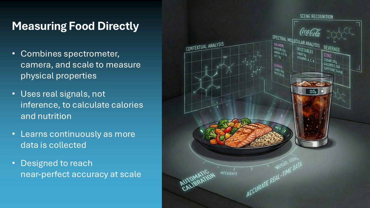 Passive, Invisible, Absolute. No partitions, no photos, no manual experiments. Just eat and the health data is captured